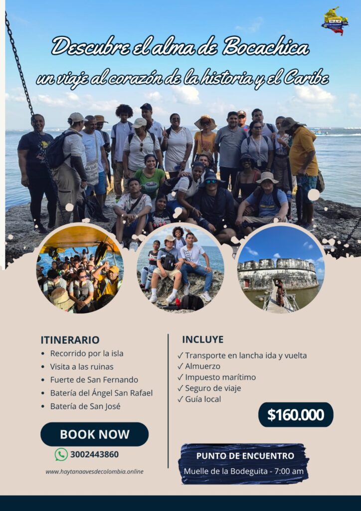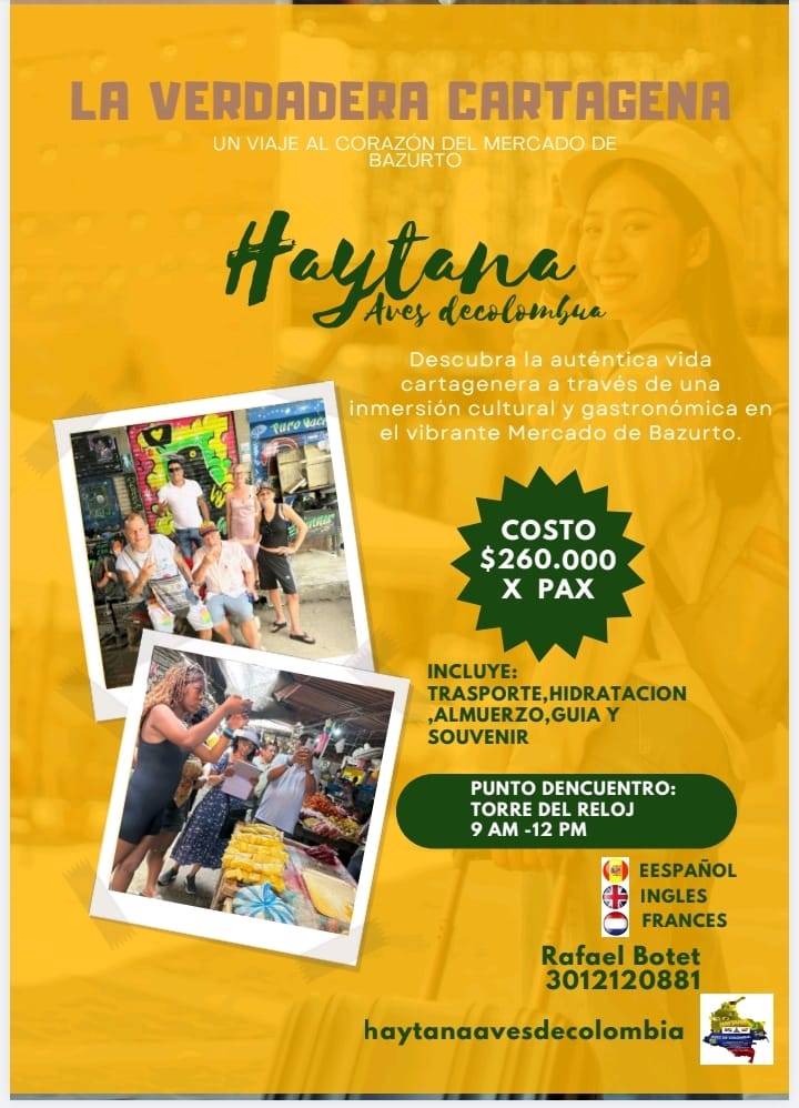 Ofrecemos guía profesional certificado (RNT 45669) y transporte para un máximo de 4 pasajeros en Cartagena y municipios cercanos como Turbaco, Arjona, María La Baja, San Juan Nepomuceno, San Jacinto, El Carmen de Bolívar, incluyendo visitas a comunidades resilientes como Mampuján, San Pedro Consolado y El Salado, así como Mompox. Disfruta de recorridos de naturaleza, observación de aves, cultura y etnoturismo.
